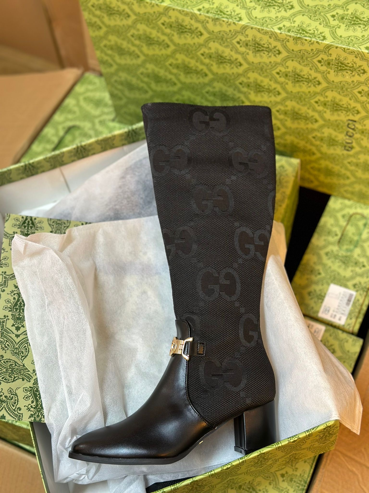BLACK GUCCI HEEL BOCHELS