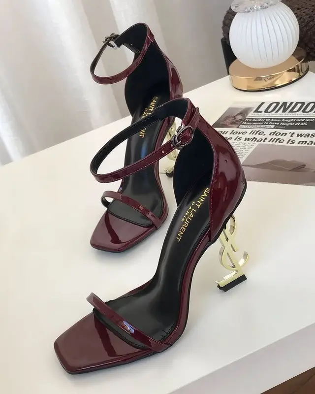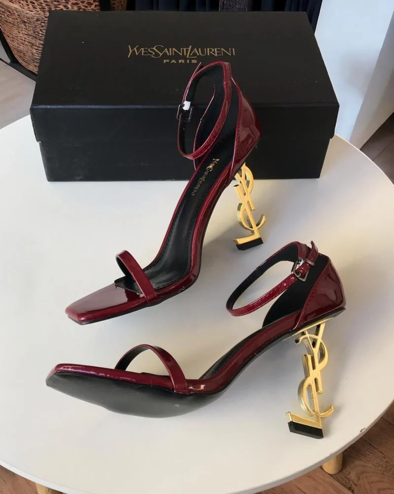 كعب Saint Laurent برغندي-كعب ذهبي