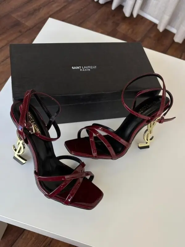 كعب Saint Laurent مشبك برغندي-كعب ذهبي