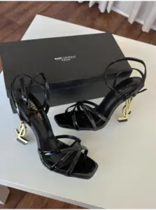 كعب Saint Laurent مشبك اسود-كعب ذهبي