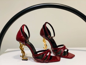 كعب Saint Laurent مشبك برغندي-كعب ذهبي